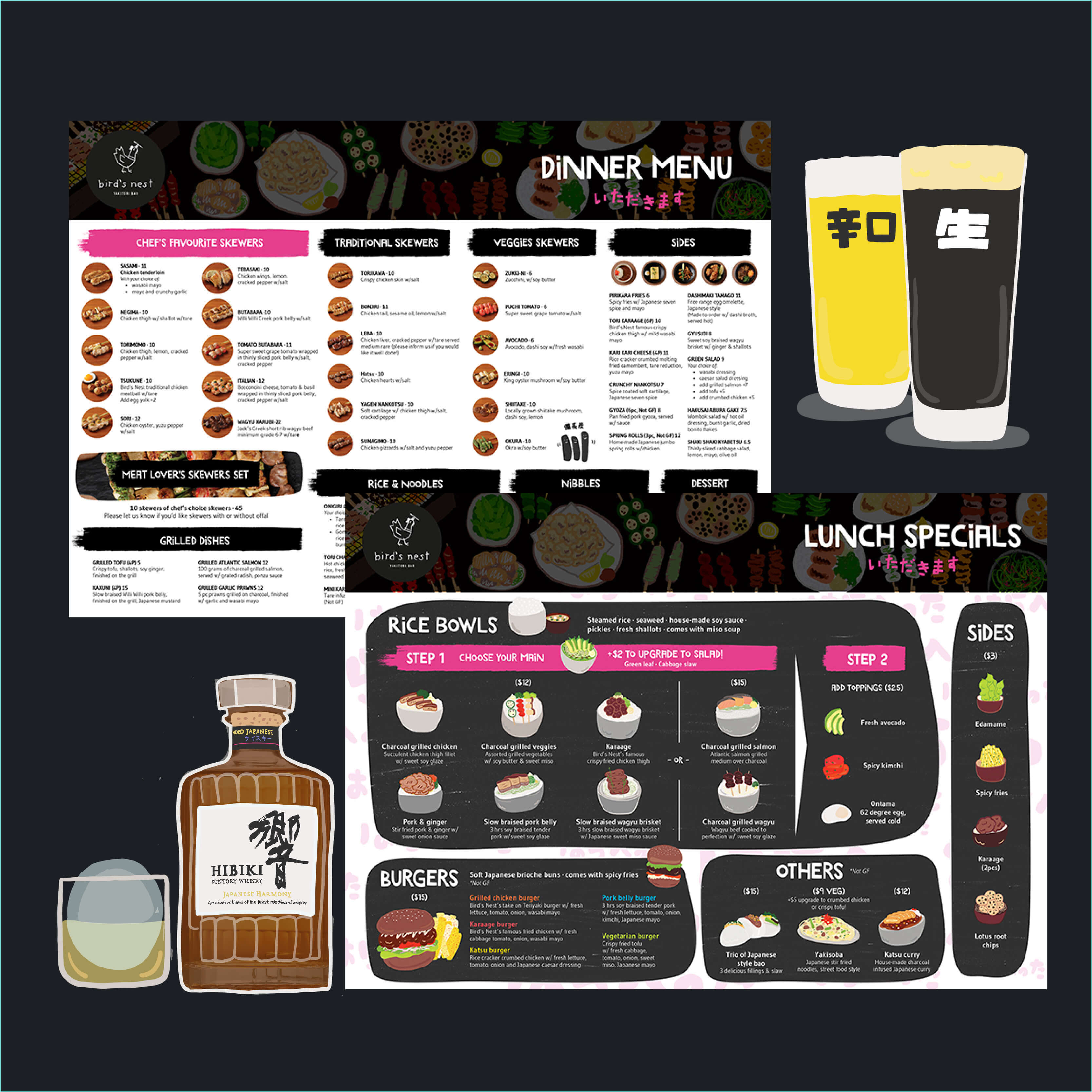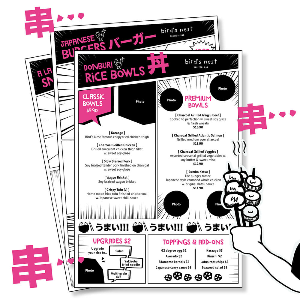 Each Bird’s Nest location expresses its own personality within a cohesive visual system: West End flagship venue: refined, contemporary and rooted in Japanese culinary tradition; Toowong; manga-inspired, playful, fast-casual store, and Fortitude Valley; whisky & sake bar — moody, elegant and intimate, evoking late-night Japanese bar culture.