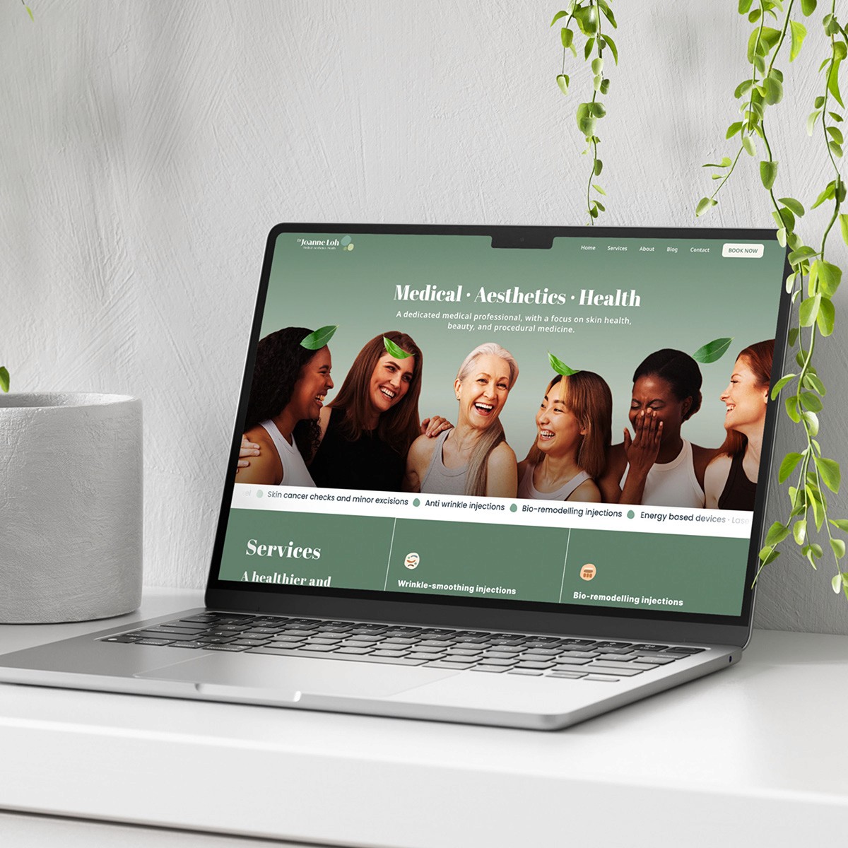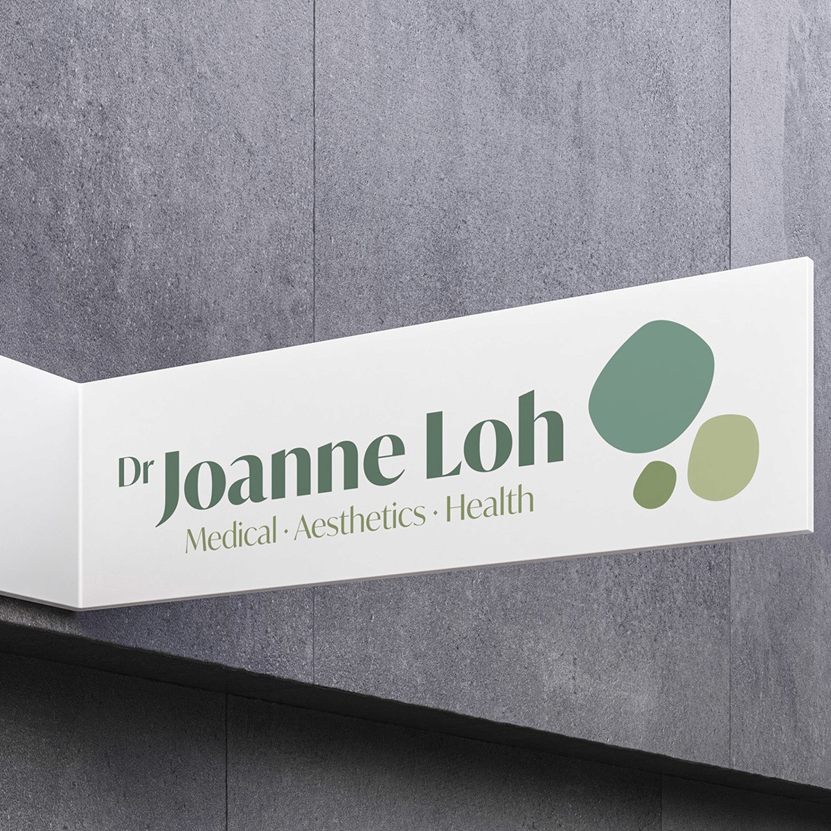 The branding for Dr Joanne Loh is designed to balance professionalism with approachability. The logo takes inspiration from organic forms such as skin cells, pigmentation, and moles, reflecting her expertise in skin health and cosmetic medicine while celebrating individuality and natural beauty.