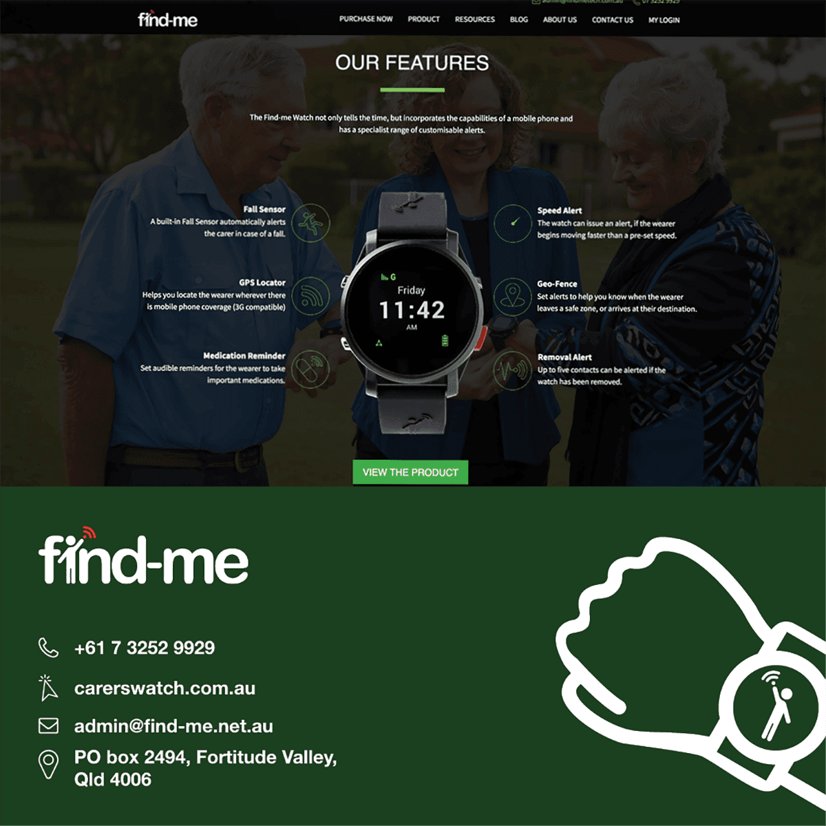 Design deliverables included back-end interface mockups for the web monitoring system, website design feedback to improve user experience and clarity, and a full set of marketing collateral such as brochures, DL flyers, pull-up banners, and business cards. Custom design assets were also created, including a cohesive set of icons for the watch’s features and interface.