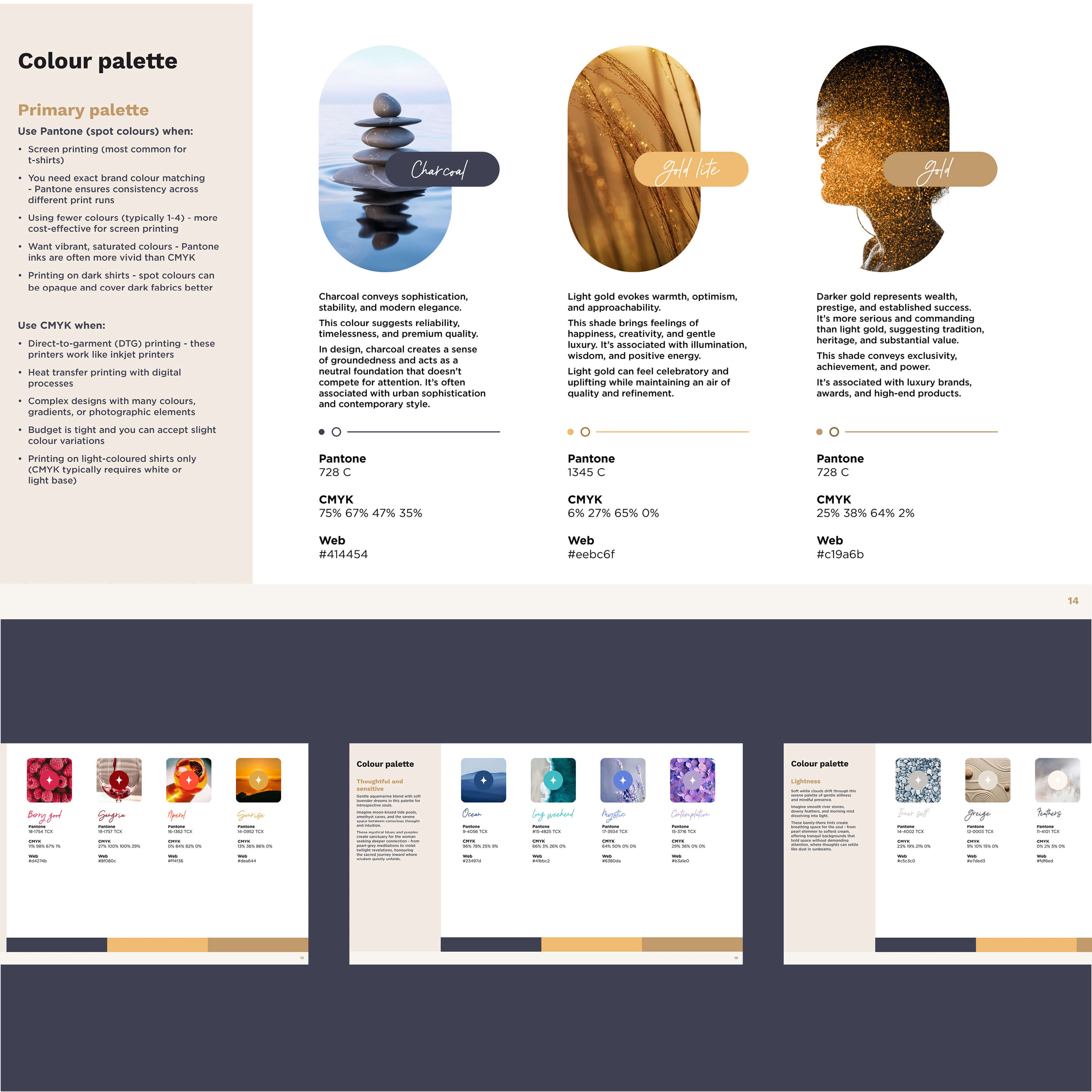 The subtle astronomical reference speaks to the brand’s deeper understanding that women navigate by their own inner light, especially during the messier chapters of life. The typography is sophisticated yet approachable—serif elements add timeless femininity while the clean lines adds strength. The golden and charcoal palette reinforces luxury and warmth without ostentation.