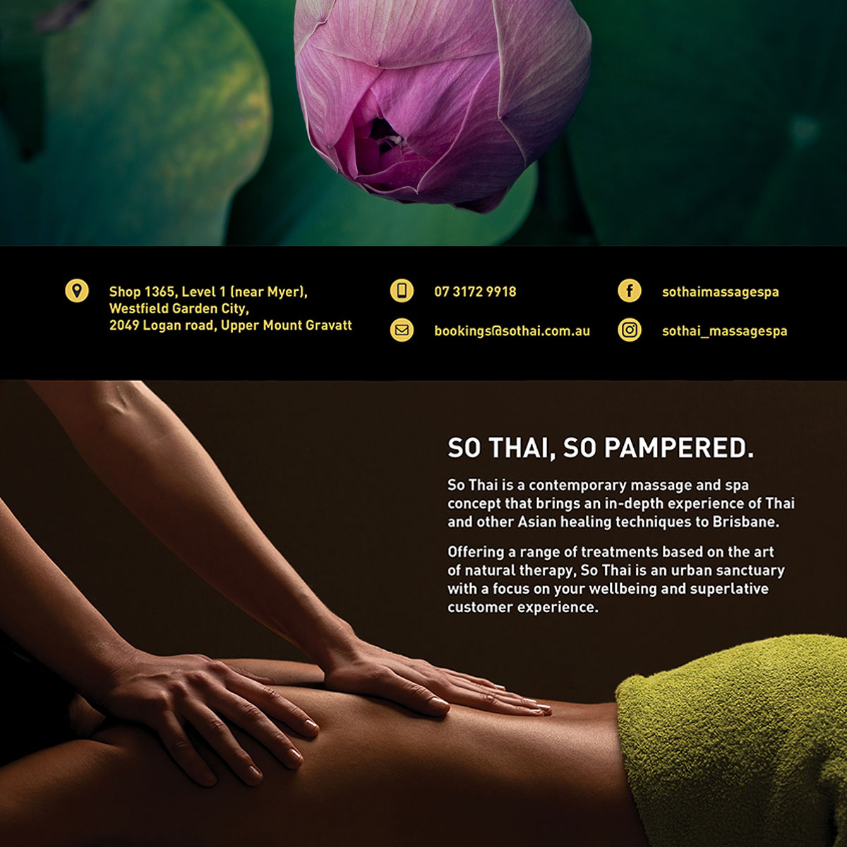 So Thai massage and spa is a contemporary massage and spa concept that brings over 25 years of Thai and other Asian healing techniques to Brisbane. Offering a range of treatments based on the art of natural therapy, So Thai is an urban sanctuary with a focus on your wellbeing and superlative customer experience.
